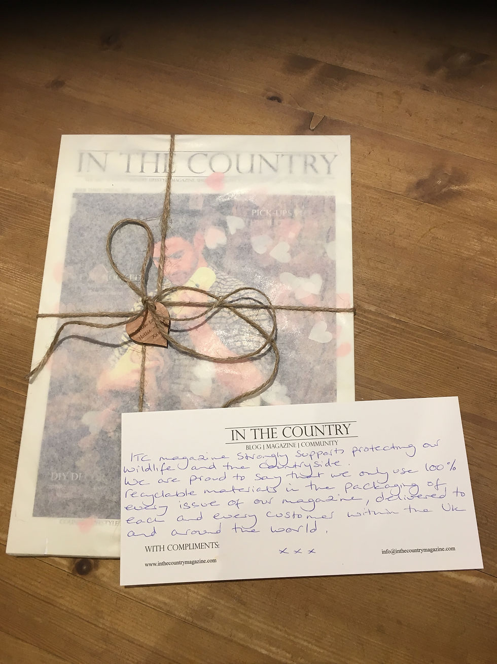 When I started the business, I knew I wanted to create something truly special with regards to the packaging. Something that would make I.T.C unique and memorable. Using the confetti and tissue paper to wrap the magazines was something I was adamant about from day one. The 'twine' used to tie the magazine was mum's (a.k.a - my 2IC) idea, along with the wooden hearts. Even the envelopes and stamps are recyclable!