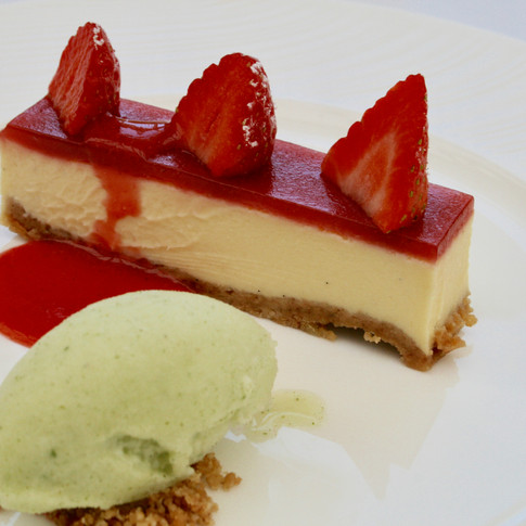 We vowed at this point, to order different desserts and so I ordered the Baked Cheesecake with Beaulieu Strawberries and Lemon Verbena Sorbet from the Estate Menu whilst Mum ordered the selection of cheeses from the trolley.