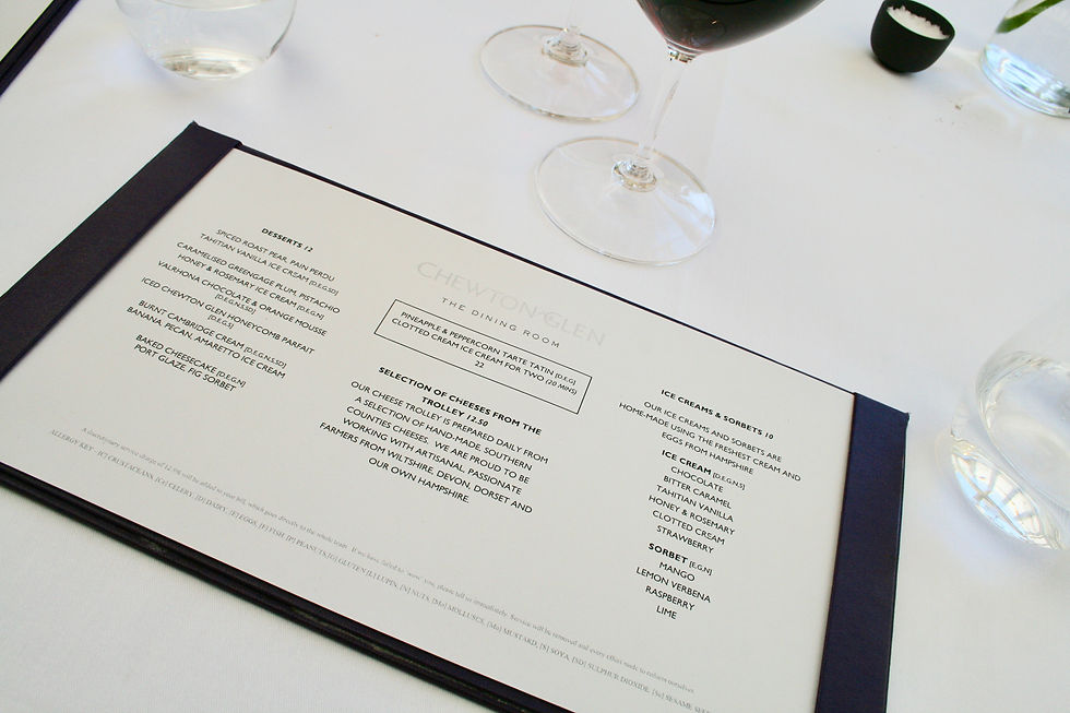 I honestly don't think I could find something negative to say about our lunch at Chewton Glen it was truly delicious. I must thank Head Chef Simon Addison, Executive Head Chef Luke Matthews and his hugely talented team for producing such unforgettably tasty dishes. They really were wonderful and unlike anything else I have ever tasted. The quality of both the food and the service was out of this world and I would highly recommend Chewton Glen's lunch menu to anyone in a heartbeat.